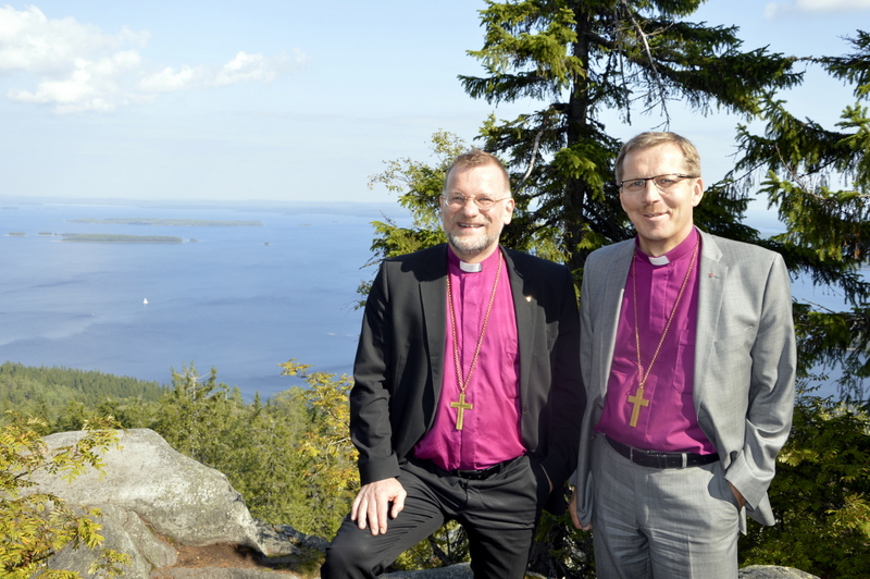 Piispat Jukka Keskitalo ja Jari Jolkkonen tuumasivat hiippakuntien yhteistyön hedelmälliseksi.