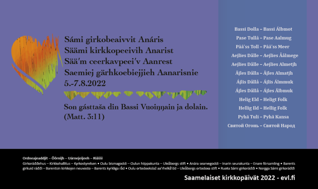 Viidennet Saamelaiset kirkkopäivät järjestetään 5.-7.8.2022 teemalla Pyhä Tuli – Pyhä Kansa. Tapahtuma järjestetään neljän vuoden välein. Edelliset kirkkopäivät olivat Ruotsissa, Arvidsjaurissa kesällä 2017, Suomessa järjestettäviä kirkkopäiviä siirrettiin vuodella eteenpäin koronapandemian vuoksi.