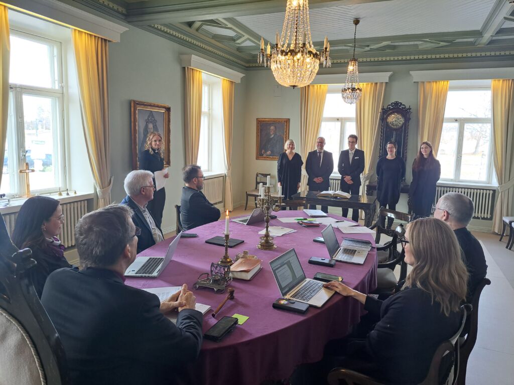 Pappiskandidaatit tuomiokapitulin istunnon edessä. Kuvaaja Pekka Mustakallio.