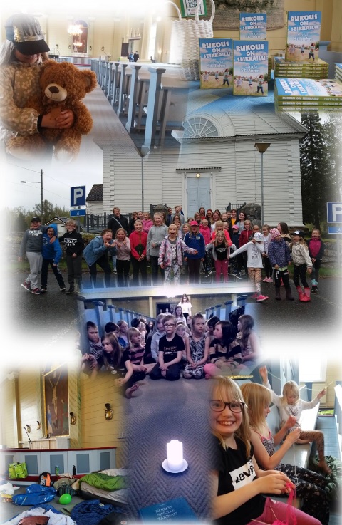 Lauantai-iltana 25.5.2019 Simon kirkon edessä kävi kova kuhina. Kirkko alkoi täyttyä lapsista ja nuorista, jotka kantoivat mukanaan makuupusseja ja tyynyjä. He olivat tulossa yöksi kirkkoon.