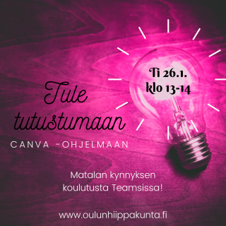 Oulun hiippakunnan seurakuntien somesisältöjen tuottajille on tarjolla koulutusta ja ideoita Canva -ohjelman käyttöön. Koulutuksen ajankohta on ti 26.1.2021 klo 13-14. Ennen koulutusta luo itsellesi tunnukset kyseiseen ohjelmaan. Canva on ohjelma, jolla opit luomaan tyylikkäitä sisältöjä eri sosiaalisen median kanaviin. Kouluttajana Harriet Urponen. Linkki ohjelmistoon on täällä. (Linkki vie osoitteeseen Canva.com)