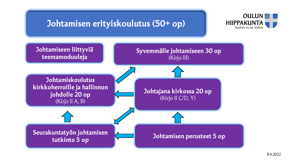 Johtamisen erityiskoulutuksen modulit, järjestäjinä Kirkon koulutuskeskus ja hiippakunnat: